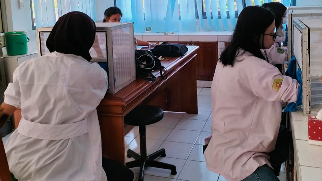 Mahasiswi Program Studi Farmasi Universitas Jenderal Achmad Yani (UNJANI) sedang melakukan pengujian repelen di Laboratorium Loka Litbang Kesehatan Pangandaran. Kegiatan berlangsung Tanggal 10 Juni 2021. Setiap peserta dan pendamping kegiatan penelitian dihimbau untuk melaksanakan protokol kesehatan pencegahan Covid-19 selama kegiatan. Pengujian repelen merupakan salah satu layanan publik di Loka Litbang Kesehatan Pangandaran yang bertujuan untuk melayani kegiatan penelitian, surveilan dan sebagainya sesuai dengan kebutuhan klien. [DAC]